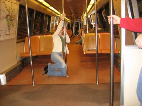 Pole dancing on the metro